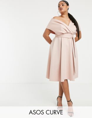 Plus-size dress by ASOS DESIGN For that thing you have to go to V-neck Fallen shoulders Tie waist Zip-back fastening Regular fit Just select your usual size
