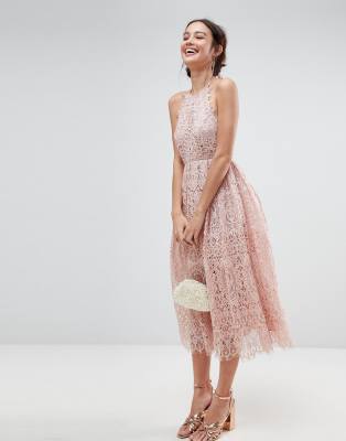 ASOS Lace Pinny Scallop Edge Midi Prom Dress