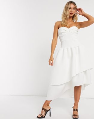 Midi dress by ASOS DESIGN For that thing you have to go to Bandeau neck Layered skirt Asymmetric hem Zip-back fastening Regular fit True to size