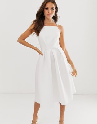 Midi dress by ASOS DESIGN Worth making plans for Lined top Square neck Adjustable straps Bow detail to back Zip-back fastening with hook and eye Regular fit Just select your usual size