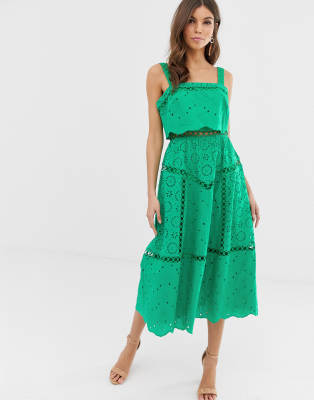 Dress by ASOS DESIGN Worth making plans for Fully lined Square neck Cropped overlay Crochet-lace inserts Zip-back fastening Regular fit Just select your usual size