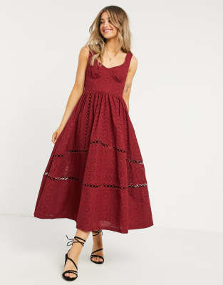 Midi dress by ASOS DESIGN Your new favourite dress V-neck Sleeveless style Cup details Crochet-lace inserts Skater style Regular fit True to size