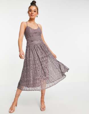 Midi dress by ASOS DESIGN Crack the dress code Scoop neck Cami straps Circle trims Zip-back fastening Regular fit True to size