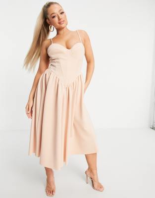 Midi dress by ASOS DESIGN The scroll is over Sweetheart neck Adjustable straps Corset-style bodice Zip-back fastening Regular fit True to size