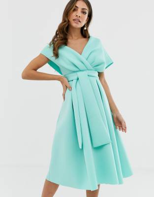 Dress by ASOS DESIGN For that thing you have to go to Crossover front Boned, lined top Tie waist Zip back with hook-and-eye closure Regular fit Just select your usual size