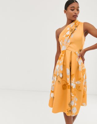 Dress by ASOS DESIGN Worth making plans for Asymmetric neck Floral print Pleat detail Side zip with hook-and-eye fastening Regular fit Just select your usual size