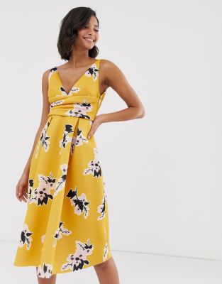 Dress by ASOS DESIGN For that thing you RSVPd to Unlined for a lightweight feel All-over floral print Plunge neck Wrap detail Zip-side fastening Mid-weight design Regular fit No surprises, just a classic cut