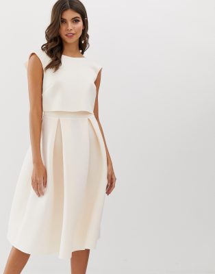 Midi dress by ASOS DESIGN For a look as lit as your plans Round neck Pleated skirt Zip-back fastening Folded back Regular fit A standard cut for a classic shape