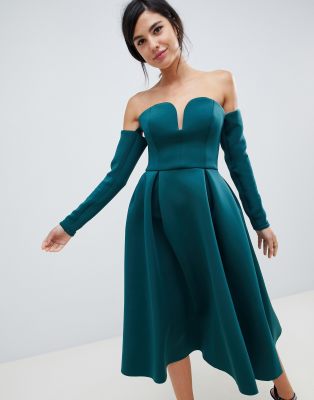 Dress by ASOS DESIGN For that thing you have to go to Off-shoulder style U-bar front Long sleeves Zip-back fastening Regular fit A standard cut for a classic shape