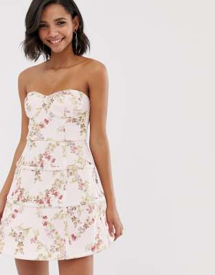 Mini dress by ASOS DESIGN For that thing you have to go to Sweetheart neck Floral print Removable straps Boned sides The skirt has built-in rings to add structure Zip back fastening Regular fit Just select your usual size
