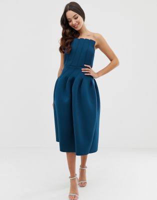 Midi dress by ASOS DESIGN Take that dress code up a level Lightweight design Bandeau neck Lined top Inner gripper tape for a secure fit Pleated design Zip back with hook-and-eye closure Regular fit True to size