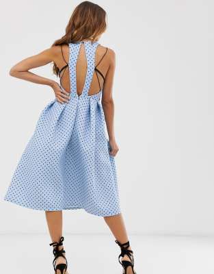 Dress by ASOS DESIGN Invitation: accepted Now here's your outfit V-neck Spot print Strappy back Zip-back fastening Regular fit Just select your usual size