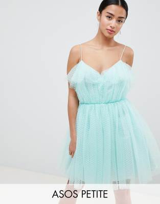 ASOS DESIGN Petite mini dobby tulle prom dress with ruffle bodice