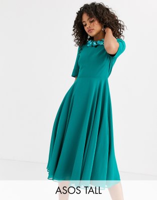 ASOS DESIGN Tall crop top embellished neckline midi dress