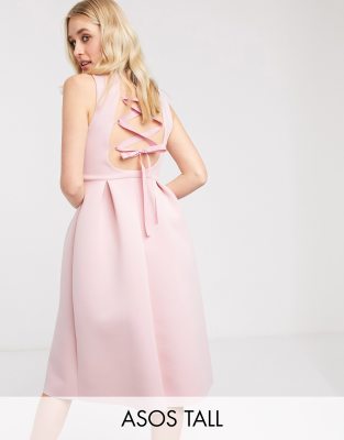 ASOS DESIGN Tall high neck sleeveless midi prom dress with lace up back in soft pink