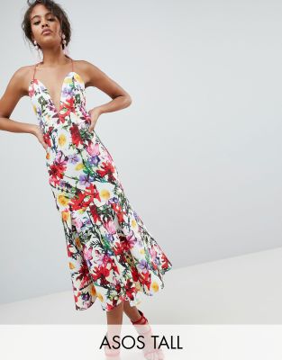 Tall dress by ASOS DESIGN Floral design Blooming lovely Plunge front Dropped waist Pleated hem Open back Zip-back fastening Slim fit A narrow cut that sits close to the body Midi dress length between: 120-127cm