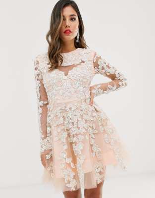 Dress by A Star Is Born When your look is a mood High neck Cut-out detail Partially lined Sequin and bead details Floral embroidery Zip back with hook-and-eye fastening Regular fit Just select your usual size