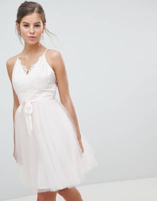 Dress by Chi Chi London Cute, right? Soft-touch lining V-neck Adjustable straps Cross back Zip-side fastening Hook-and-eye closure Regular cut Fits you just right