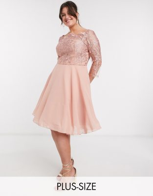 Plus-size dress by Chi Chi London For that thing you have to go to Floral embroidery Square neck Three-quarter length sleeves Regular fit True to size
