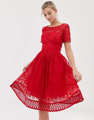 premium lace prom dress with cutwork hem in red