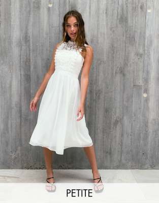 Petite dress by Chi Chi London No occasion necessary High neck Crochet-lace overlay Sleeveless style Button-keyhole back Zip-back fastening Regular fit True to size