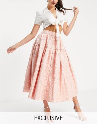 Midi skirt by Collective The Label Exclusive to ASOS Textured design High rise Tiered skirt Regular fit