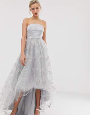 Dress by Dolly & Delicious If you have to dress up, dress up in this Bandeau neck Fitted bodice Embroidered star design Dipped hem design Full layered skirt Zip back Regular fit Just select your usual size