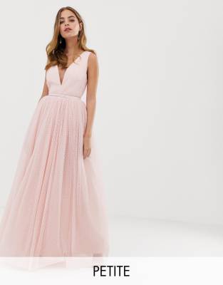 Petite dress by Dolly & Delicious For that thing you have to go to Heavyweight design Fully lined Plunge neck Tulle underskirt Zip-back fastening with hook and eye Regular fit A standard cut for a classic shape