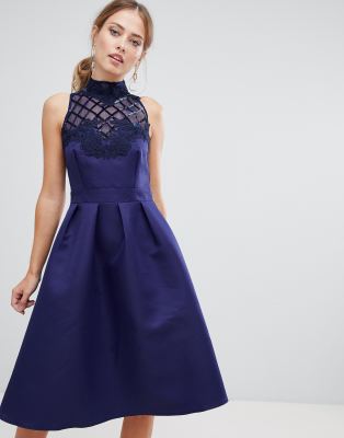 Dress by Little Mistress Mid-weight design Lined bodice High neck Sequin-embellished mesh Floral applique It's all in the details Box-pleat skirt Button-keyhole back Zip-back fastening Regular fit - true to size