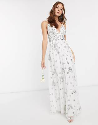 Maxi dress by Maya For that thing you have to go to Plunge neck Cami straps Sequin embellishment Zip with hook-and-eye fastening Regular fit True to size