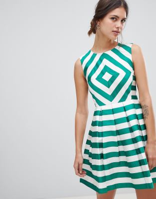 Dress by Minuet Lightweight design Fully lined Contrast stripes Crew neck It's classic you Fit-and-flare style Zip back with hook-and-eye closure Regular fit - true to size