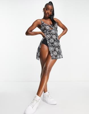 Dress by Playful Promises Our kind of flowers V-neck Fixed cami straps Tie-back fastening Cut-out panels Side split Slim fit