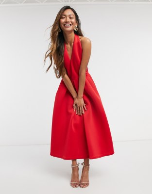 Dress by True Violet This dress deserves a night out Halter neck Soft pleats Open back Zip-back fastening Regular fit True to size Exclusive to ASOS