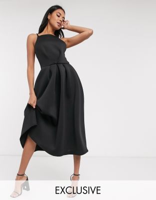 Midi dress by True Violet Who doesn’t love playing dress-up? Square neck Cami straps Pleated skater skirt Low back Zip-back fastening Regular fit True to size Exclusive to ASOS