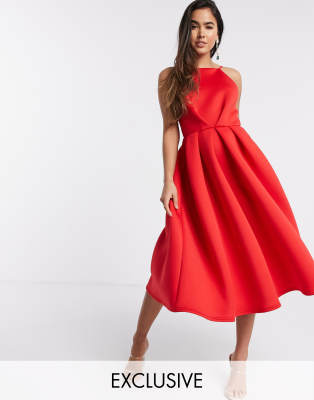 Midi dress by True Violet Crack the dress code High neck Cinched waist Pleated skirt Open back Zip-back fastening Regular fit True to size