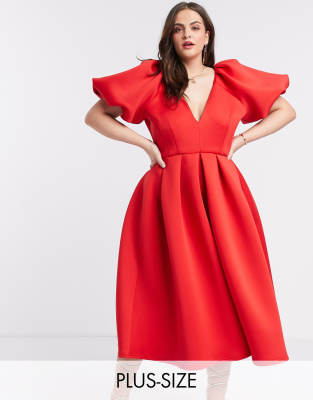Plus-size dress by True Violet For that thing you have to go to Plunge neck Puff sleeves Tie detail to reverse Zip-back fastening Regular fit True to size