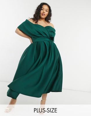 Plus-size dress by True Violet The only plus-one you need Off-shoulder design Wrap front Fitted waist Zip-back fastening Regular fit True to size Exclusive to ASOS